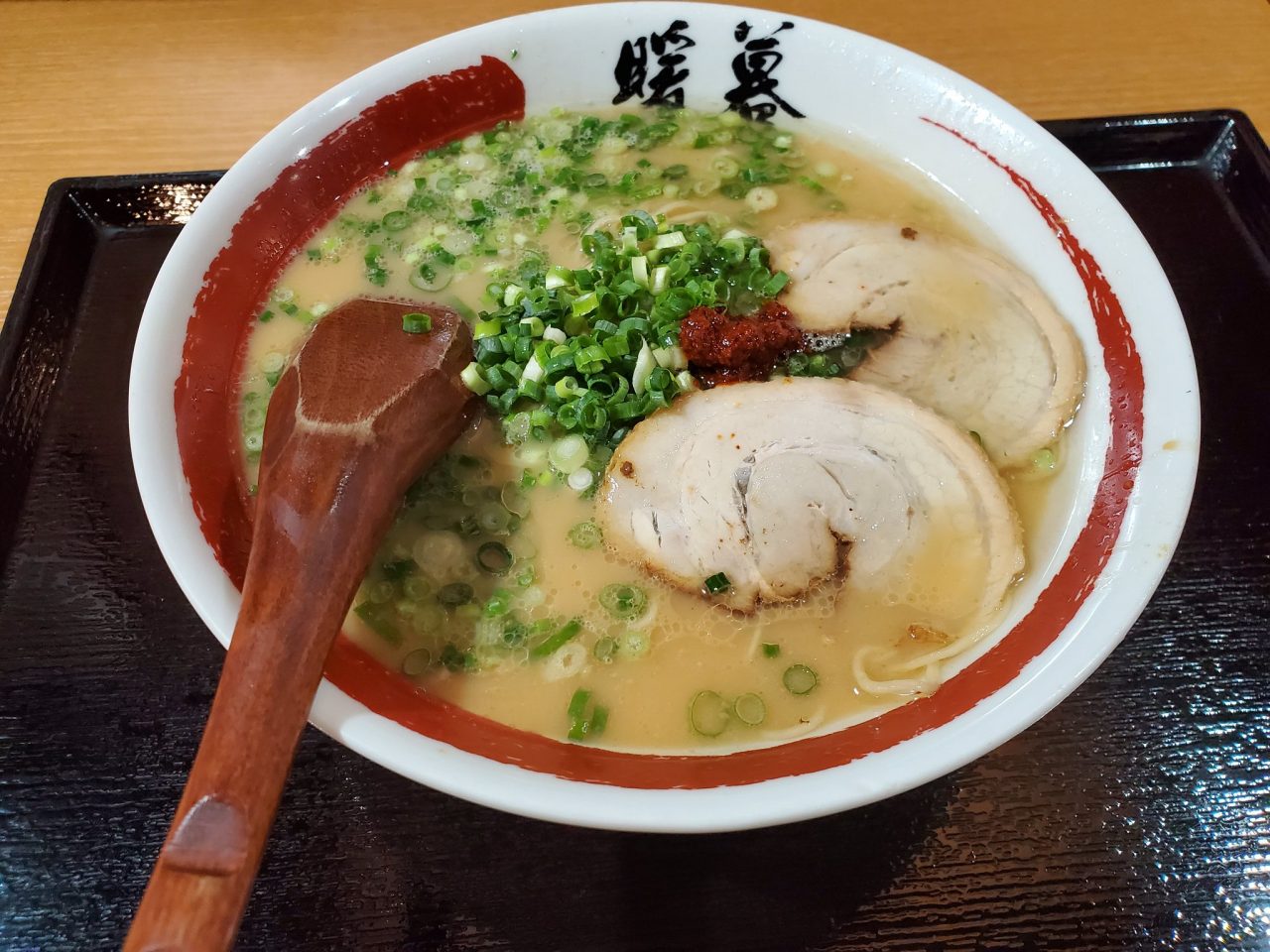 とんこつのまろやかなスープの上にはシャキシャキの葱が乗っていて、