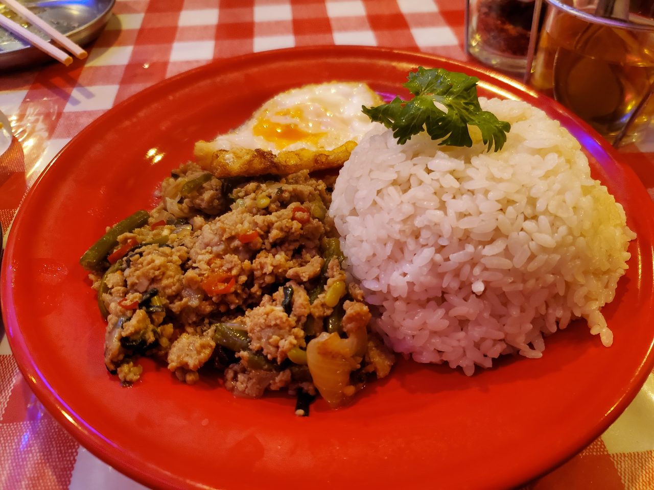 どこかしらかハーバル……?なんだかエスニックなお味が漂ってきて、シンプルだけど奥が深いガパオライスでした!お肉そんな食べれないけど、肉のボリュームや油っぽさも丁度よかったです!(かほ)